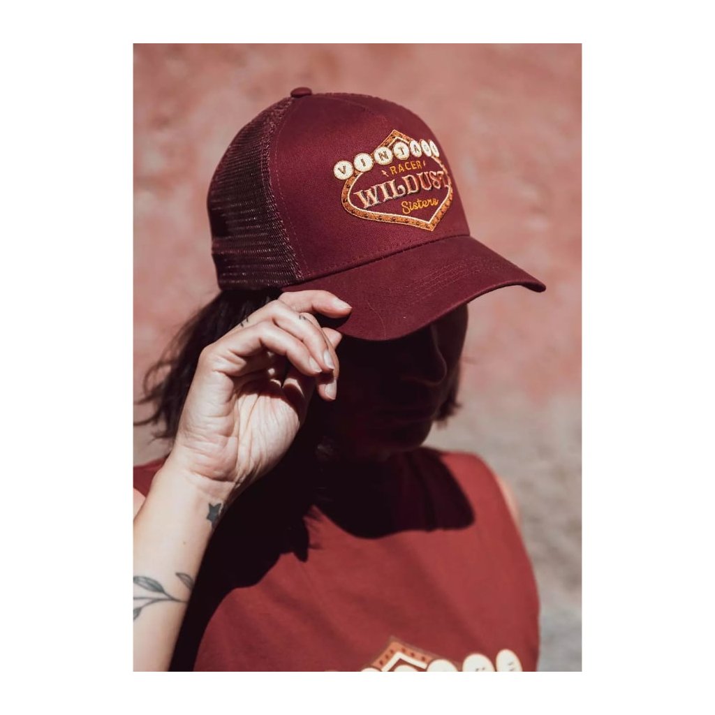 Welcome to Las Vegas, baby! Táto trucker šiltovka v sýtej bordovej farbe (Bordeaux) je poctou ikonickým neónovým nápisom zo 70. rokov, ktoré vítajú cestovateľov na vstupe do mesta hriechu. Je to štýlový pozdrav z amerického západu pre všetky motorkárky a dobrodružky, ktoré milujú prach púšte Mojave a nekonečné kilometre legendárnej Route 66.