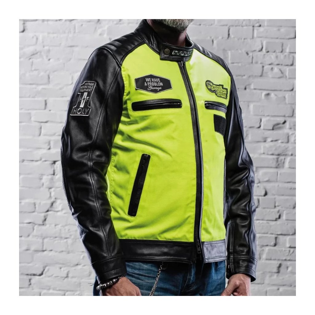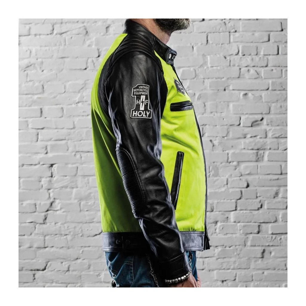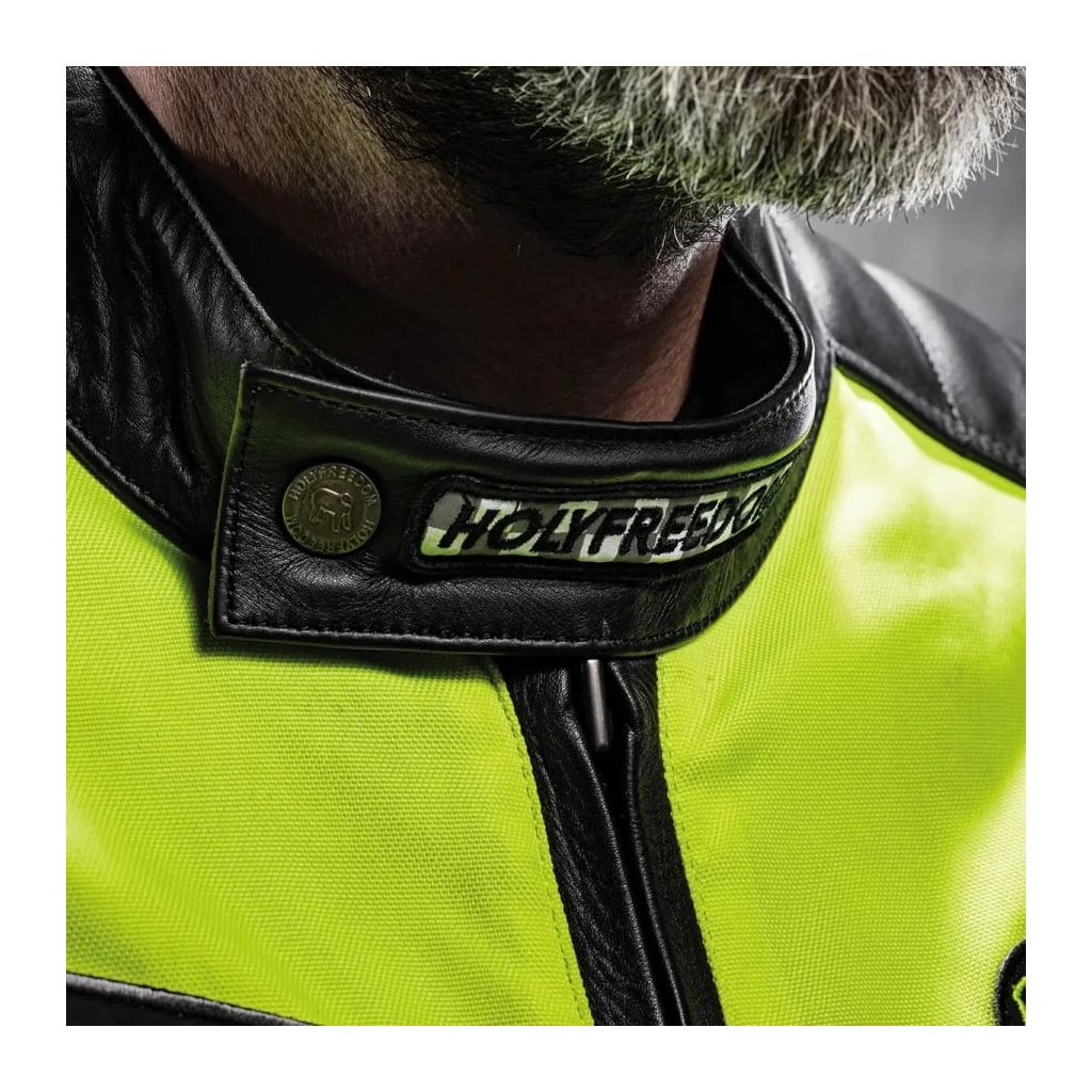 Táto CE certifikovaná bunda Holyfreedom® je stvorená pre jazdcov, ktorí odmietajú kompromisy medzi bezpečnosťou a vintage estetikou. Kombinácia fluorescenčnej žltej tkaniny a prémiovej kože nielen nahrádza klasické reflexné vesty, ale povyšuje viditeľnosť na dizajnový prvok.