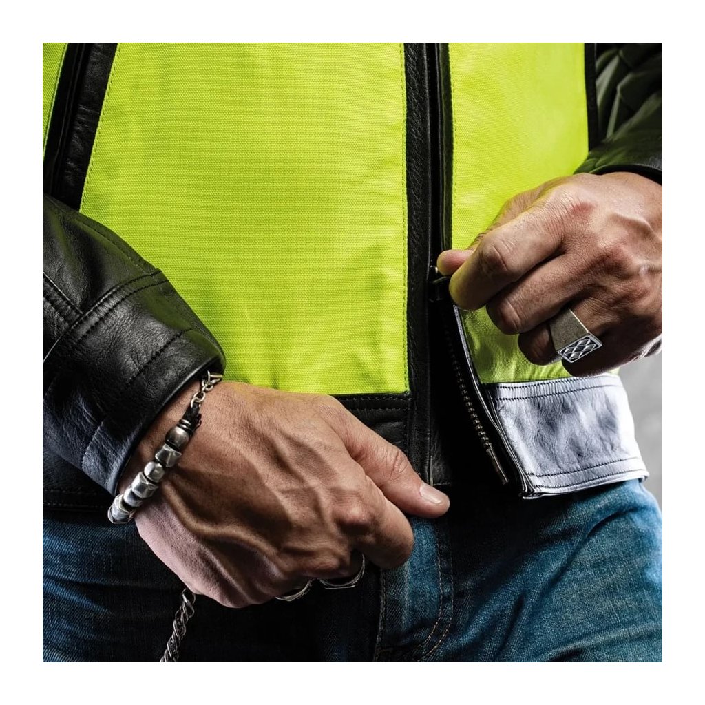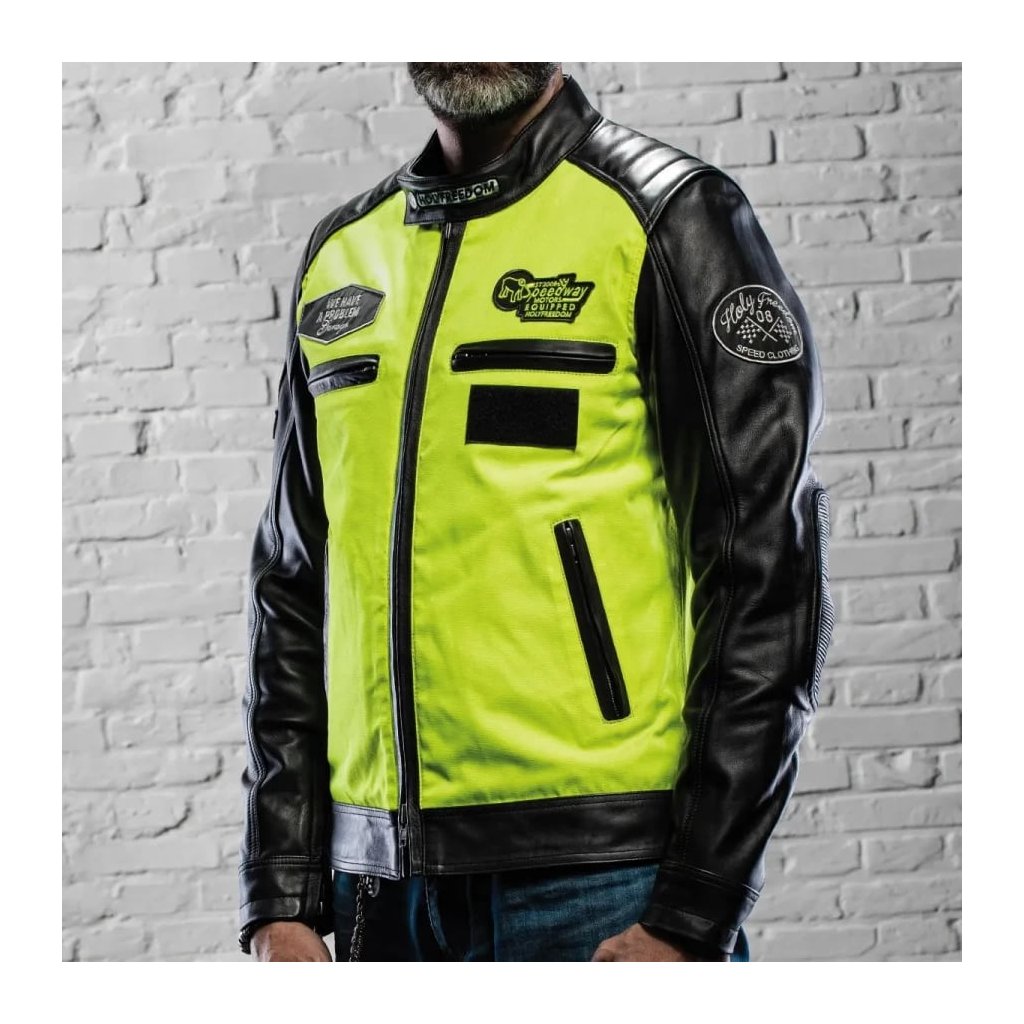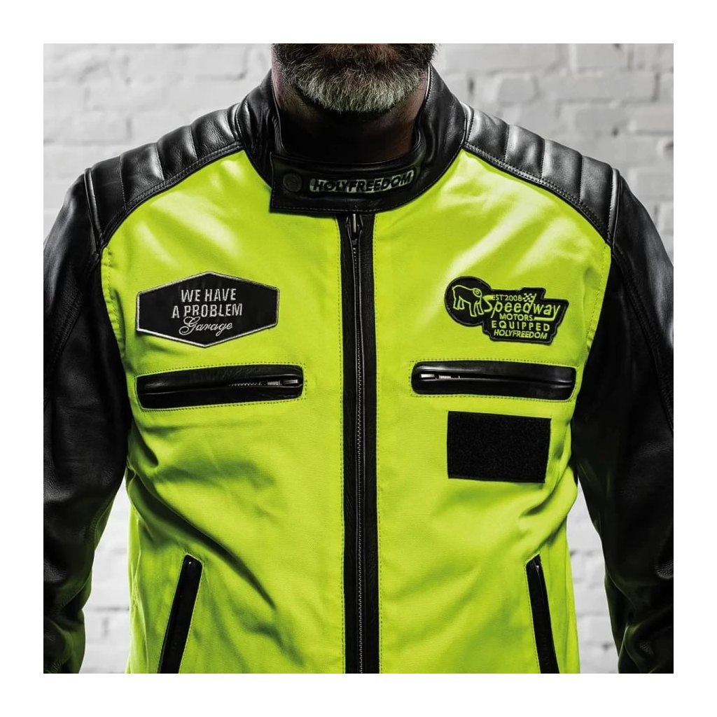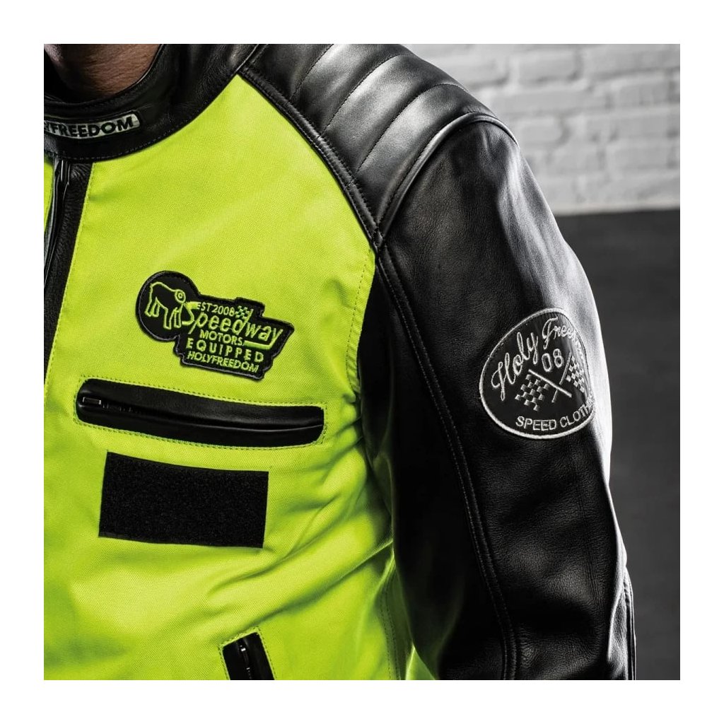 Táto CE certifikovaná bunda Holyfreedom® je stvorená pre jazdcov, ktorí odmietajú kompromisy medzi bezpečnosťou a vintage estetikou. Kombinácia fluorescenčnej žltej tkaniny a prémiovej kože nielen nahrádza klasické reflexné vesty, ale povyšuje viditeľnosť na dizajnový prvok.
