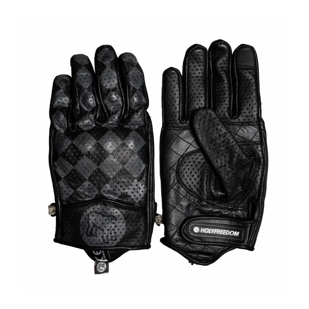 Štýlové kožené moto rukavice Holyfreedom Bullit Grey s ikonickým šachovnicovým dizajnom. Perforovaná hovädzia koža zaručuje perfektné vetranie, zatiaľ čo certifikované protektory Elastopan chránia vaše kĺby. Ideálna voľba pre milovníkov café racer a custom štýlu, ktorí hľadajú komfort a bezpečnosť v jednom.