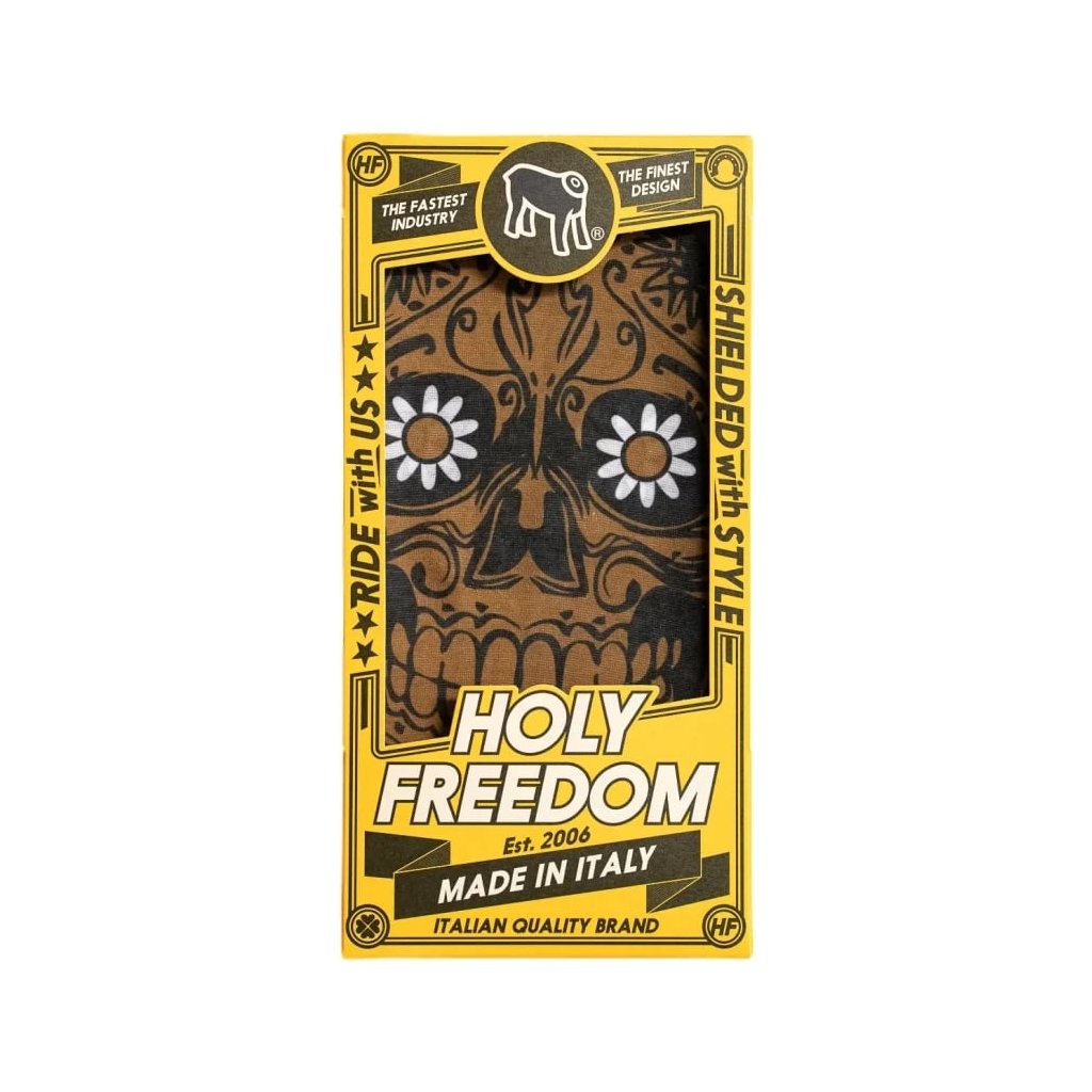 Rýchloschnúci moto nákrčník Holyfreedom® Golden Skull s antibakteriálnou úpravou Sanitized®. Ideálny pre aktívnych jazdcov, skvele odvádza pot a bráni zápachu. Made in Italy.