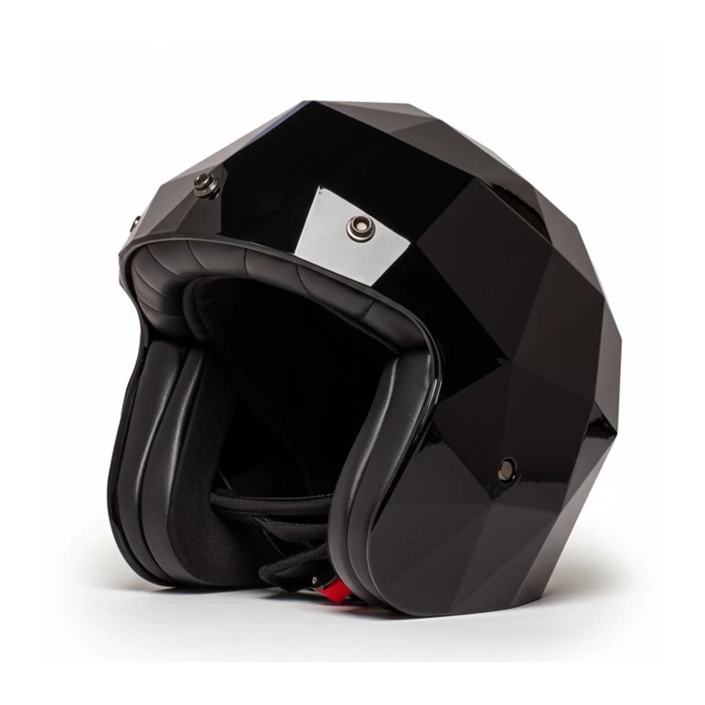 Prilba Stealth od Holyfreedom® nie je len ďalšia "jetka" v poradí. Jej škrupina s unikátnymi geometrickými facetami nielen skvele vyzerá, ale vďaka tomuto dizajnu je v prípade nárazu ešte odolnejšia. V čiernom lesklom prevedení ide o neprehliadnuteľný kúsok, ktorý kombinuje surový technický vzhľad s najmodernejšou ochranou podľa normy ECE 22.06.