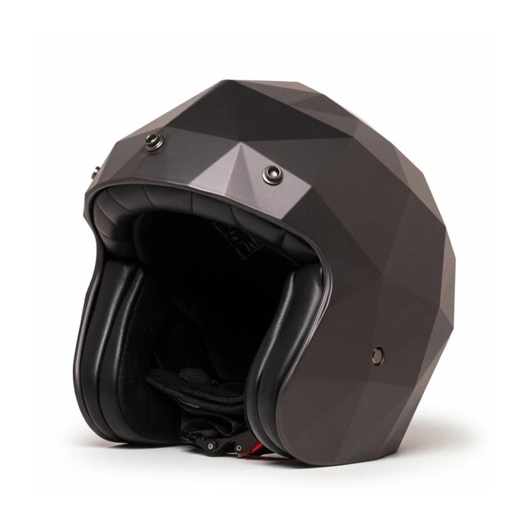 Prilba Stealth od Holyfreedom® nie je len ďalšia "jetka" v poradí. Jej škrupina s unikátnymi geometrickými facetami nielen skvele vyzerá, ale vďaka tomuto dizajnu je v prípade nárazu ešte odolnejšia. V tmavo šedo matnom prevedení ide o neprehliadnuteľný kúsok, ktorý kombinuje surový technický vzhľad s najmodernejšou ochranou podľa normy ECE 22.06.
