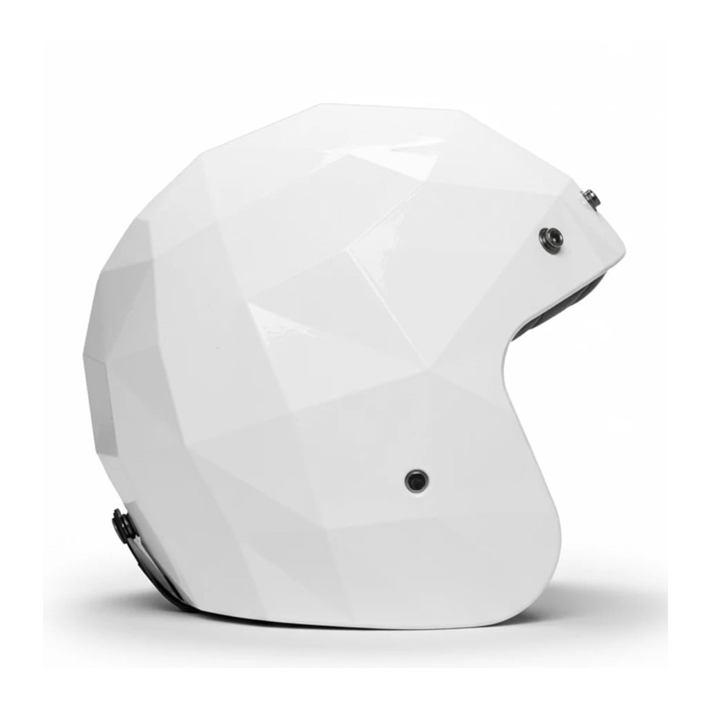 Unikátna jet prilba Holyfreedom Stealth v bielom prevedení. Výrazný geometrický dizajn škrupiny, nízka hmotnosť 1150g a najnovšia bezpečnostná certifikácia ECE 22.06. Vyberateľné vnútro a bezpečné Double D zapínanie.